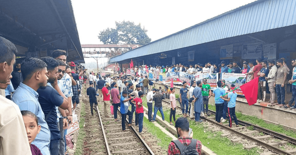 রেলপথ সংস্কার ও উন্নয়নসহ আট দফা দাবিতে সিলেট বিভাগের সব রেলপথে অবরোধ কর্মসূচি শুরু হয়েছে। শনিবার (১ নভেম্বর) সকাল ১০টা থেকে এই কর্মসূচি শুরু হলে বিভিন্ন স্টেশনে ট্রেন চলাচলে বিঘ্ন ঘটে।